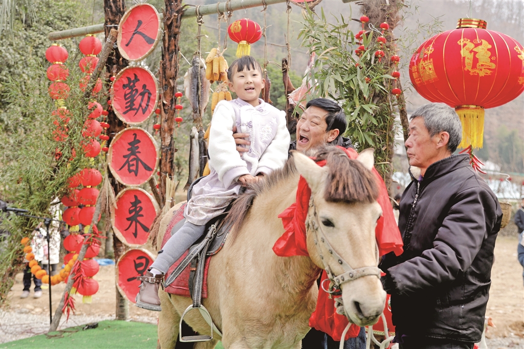 春節(jié)期間,寧陜縣城關(guān)鎮(zhèn)漁灣村舉行“回寧陜過大年”民俗展演。圖為游客體驗(yàn)?zāi)晁谆顒?dòng)。楊寧 攝