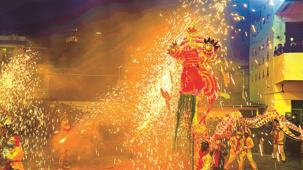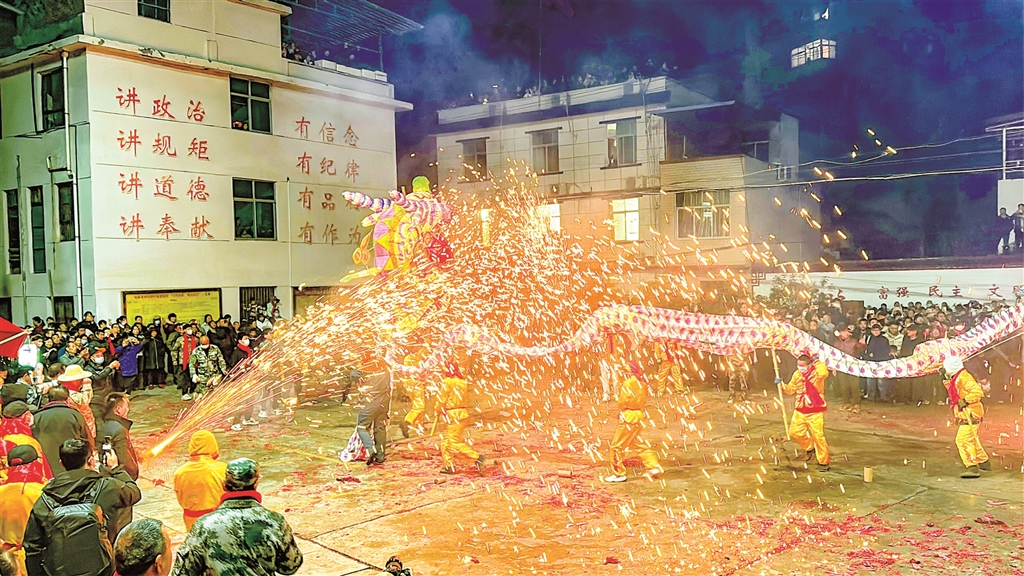 圖一:3月1日,旬陽市蜀河古鎮舉行“火獅子”民俗活動。烏蒙 羅瑞琦 攝