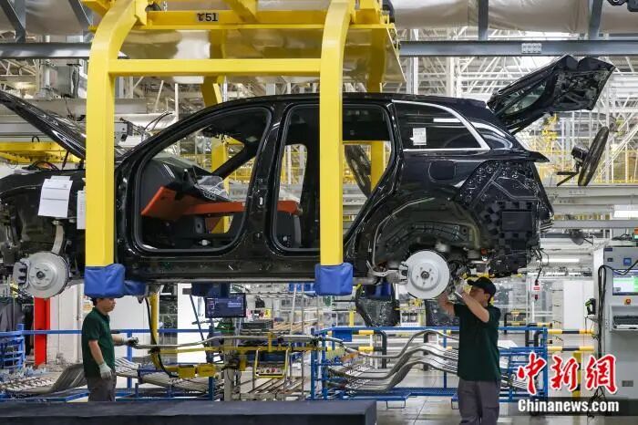 資料圖:位于江蘇常州的理想汽車智能制造基地生產車間內的忙碌景象。中新社記者 泱波 攝