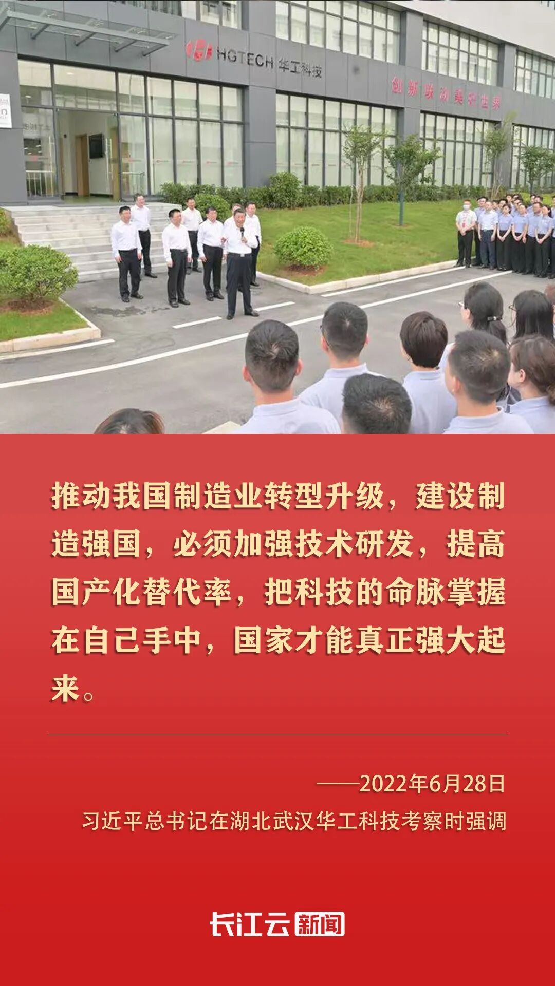2022年6月,習(xí)近平總書記來到湖北武漢考察,第一站就來到光谷,來到華工科技。他指出,湖北武漢東湖新技術(shù)開發(fā)區(qū)在光電子信息產(chǎn)業(yè)領(lǐng)域獨(dú)樹一幟。要加強(qiáng)技術(shù)研發(fā)攻關(guān),掌握更多具有自主知識產(chǎn)權(quán)的核心技術(shù),不斷延伸創(chuàng)新鏈、完善產(chǎn)業(yè)鏈,為推動我國光電子信息產(chǎn)業(yè)加快發(fā)展作出更大貢獻(xiàn)。