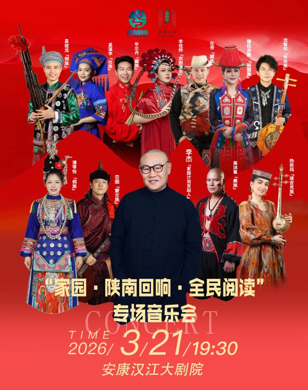 今年2月1日,《全民閱讀促進(jìn)條例》正式施行,標(biāo)志著全民閱讀邁入法治化、規(guī)范化的發(fā)展新階段。條例明確指出,要鼓勵(lì)開展內(nèi)容健康、展現(xiàn)文化底蘊(yùn)、形式多樣的閱讀推廣活動(dòng)。在安康,閱讀不僅是靜默的文字,更可以是躍動(dòng)的音符、流淌的旋律。3月21日(周六)19:30,一場(chǎng)別開生面的“家園·陜南回響·全民閱讀”專場(chǎng)音樂(lè)會(huì)將在安康漢江大劇院大劇場(chǎng)拉開帷幕。這場(chǎng)由著名音樂(lè)人李杰領(lǐng)銜、匯聚九大民族藝術(shù)家的視聽盛宴,邀您共赴一場(chǎng)“用歌聲閱讀大地”的詩(shī)意之約。