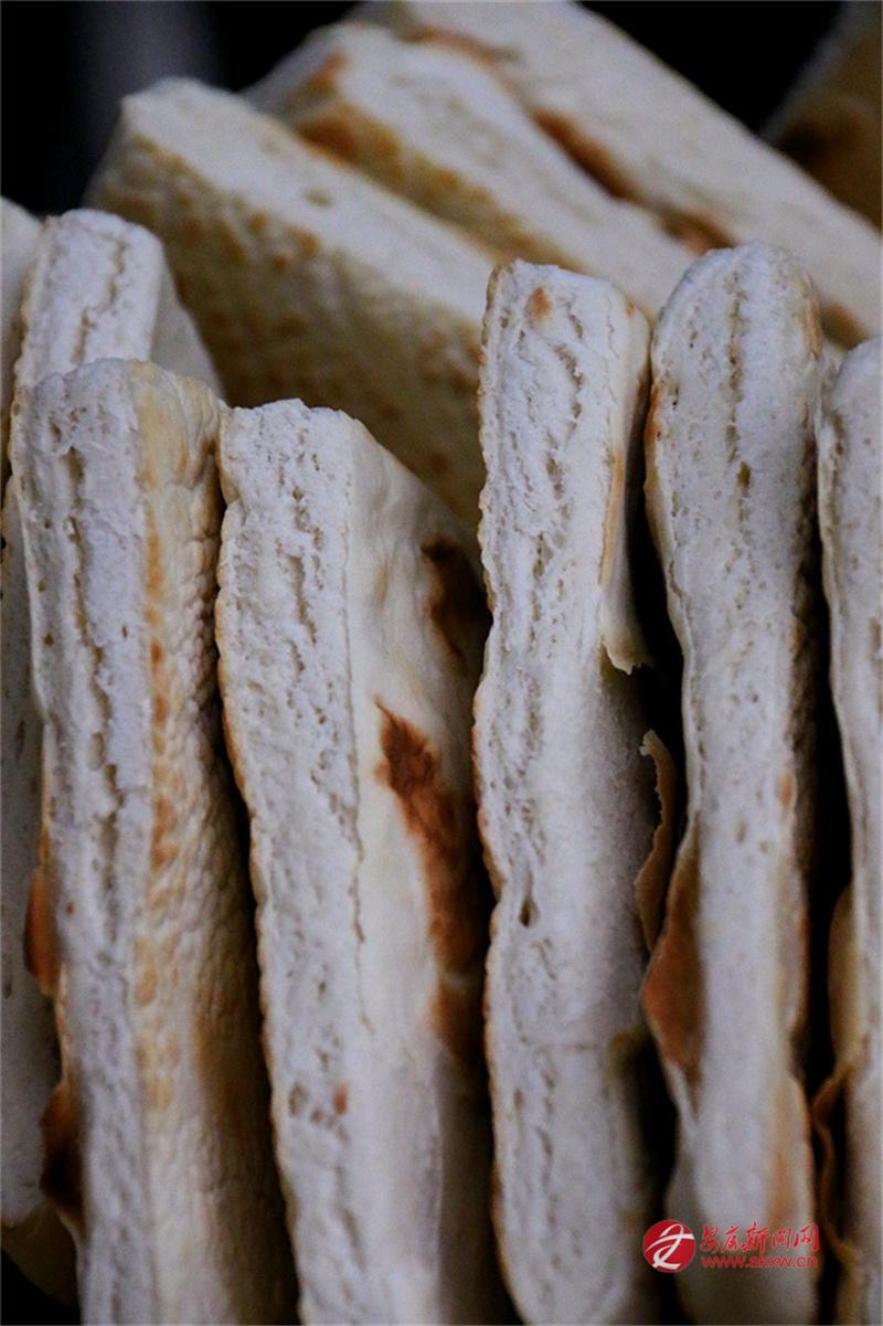 安康的牙牙兒饃是發面的。發面,在北方多用于蒸饅頭、包子,用來打饃且泡在湯里吃的,似乎不多見。安康人卻偏偏這么做了。面粉加了酵母,醒得恰到好處,不能太酸,也不能太生,揉成團,搟成圓,在鏊子上烙。火候要適中,兩面烙得焦黃,帶著些許褐色的斑點,像是虎背上的花紋,雖不如西安饦饦饃那般白凈,卻多了一股子麥香和火氣。