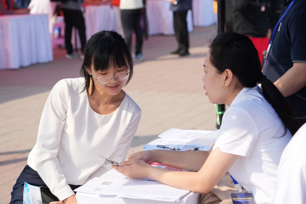 2024年9月25日,求職者(左)在招聘會(huì)現(xiàn)場與招聘單位工作人員交流。當(dāng)日,雄安新區(qū)舉辦2024年河北省畢業(yè)生就業(yè)市場雄安新區(qū)專場招聘會(huì)暨河北雄安新區(qū)大型人力資源招聘會(huì)。招聘會(huì)以“穩(wěn)崗就業(yè) 聚才發(fā)展”為主題,邀請(qǐng)京津冀地區(qū)共157家企業(yè)線下參會(huì),提供就業(yè)崗位4783個(gè)。