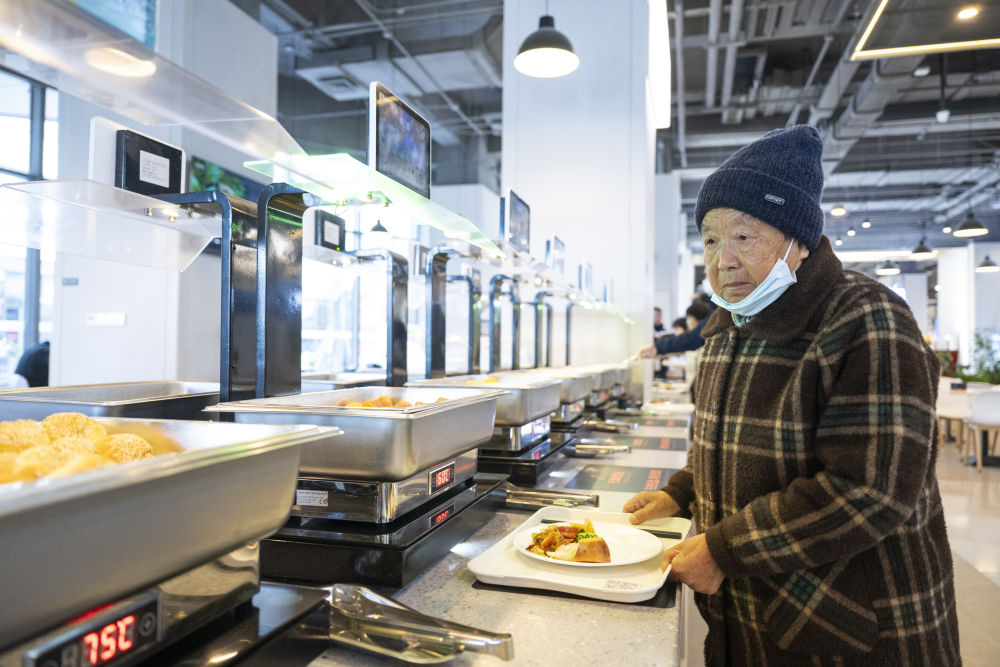 2025年11月25日,老人在雄安新區(qū)啟動(dòng)區(qū)文華社區(qū)華序府智慧食堂內(nèi)取餐。在這座食堂,居民“刷臉”即可完成身份識(shí)別,取餐時(shí)系統(tǒng)自動(dòng)綁定餐盤并實(shí)時(shí)結(jié)算,實(shí)現(xiàn)無感支付。此外,取餐區(qū)具備智能稱重與熱量測(cè)算功能、健康一體機(jī)可以生成健康報(bào)告并提供飲食建議。