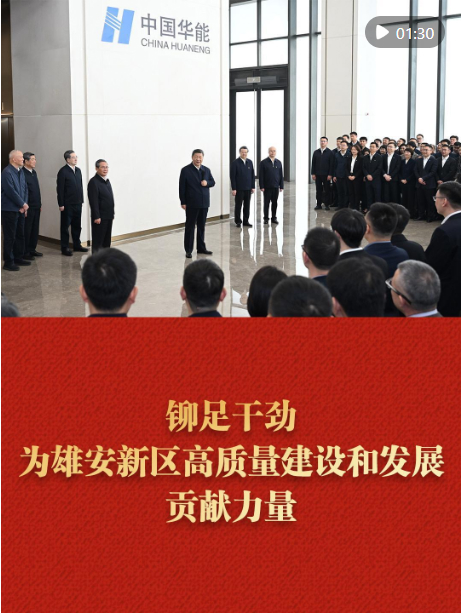 3月23日,習近平總書記來到河北雄安新區,察看啟動區建設進展,考察中國華能集團有限公司,了解雄安新區建設發展情況,親切慰問入駐和在建疏解單位干部職工代表。