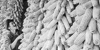 重慶市黔江區阿蓬江鎮柒坨村村民在晾曬玉米。 新華社發qTc安康新聞網