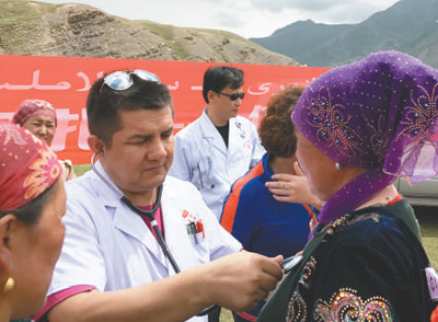 由克州人民醫(yī)院江蘇援疆醫(yī)療專家組成的義診團(tuán)隊(duì)來到烏恰縣吾合沙魯鄉(xiāng)和玉其塔什草原,為當(dāng)?shù)剞r(nóng)牧民送醫(yī)送藥。 |