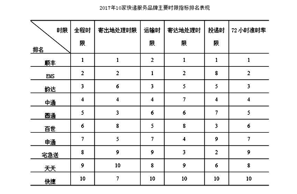 據了解,2017年快遞服務時限準時率測試范圍覆蓋50個城市,包括全部省會城市、直轄市以及19個快遞業務量較大的重點城市。測試對象為2016年國內快遞業務量排名靠前且服務水平較好的10家全網型快遞服務品牌,包括:郵政EMS、順豐速運、圓通速遞、中通快遞、申通快遞、韻達快遞、百世快遞、天天快遞、宅急送快運和快捷快遞。AkZ安康新聞網