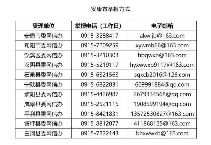 安康“整治‘自媒體’無底線博流量”專項行動舉報方式