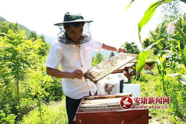 石泉縣迎豐鎮的養蜂大戶葉文章正在魔芋地邊查看蜜蜂生長情況,今年他養了109箱蜜蜂,還帶動了37戶貧困戶養蜂140多箱。蜂箱周圍種槐樹,槐樹周圍種魔芋,這樣的產業發展模式不僅提高了土地綜合使用率,還讓蜂農一年四季都有活干,能增收。 黃花菜產業ABz安康新聞網
