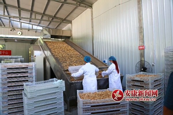 工人們將經過殺青、晾曬后的黃花菜裝入烘烤設備中進行加工。ABz安康新聞網