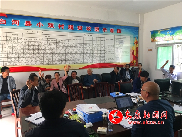 白河冷水小雙村召開貧困戶民主評議,動態調整會議。