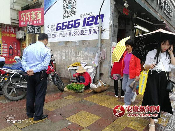 執(zhí)法人員冒雨清理南環(huán)快干,南環(huán)東路,香溪路等處流動經(jīng)營、馬路市場…