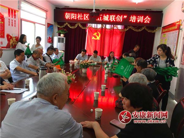 朝陽(yáng)社區(qū)召開(kāi)“五城聯(lián)創(chuàng)”培訓(xùn)會(huì)。并對(duì)參會(huì)人員發(fā)放宣傳環(huán)保袋、紙杯等。bdj安康新聞網(wǎng)