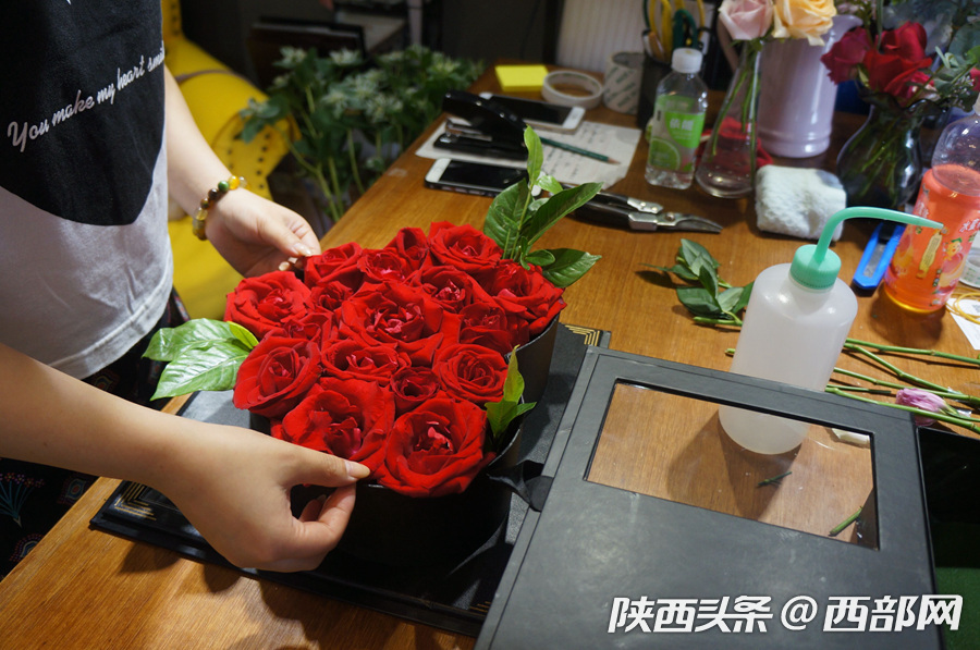 因為七夕節(jié)的到來,預(yù)定鮮花的客人很多,屹楨從早上八點多一直忙到晚上十點,什么樣的盒子適合擺放什么種類的鮮花,哪幾種顏色搭配在一起的鮮花才更漂亮,屹楨心里都很清楚,她把包好的鮮花的盒子上貼上便利貼,上面清楚的記著收花人的姓名,送花地址及送花時間,生害怕忘記一單。Hgv安康新聞網(wǎng)
