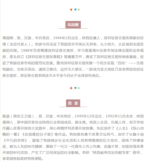 根據評選表彰工作部署,在各地區各部門反復比選、組織考察、集體研究提出推薦人選的基礎上,經歸口評審、統籌考慮,產生了100名改革開放杰出貢獻擬表彰對象。其中我省5人入選,安康1人上榜。ewW安康新聞網