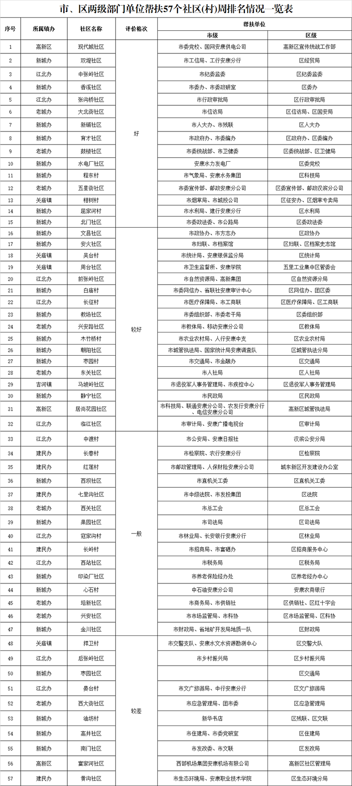 一、市、區兩級部門單位幫扶57個社區(村)周排名情況一覽表Hfr安康新聞網