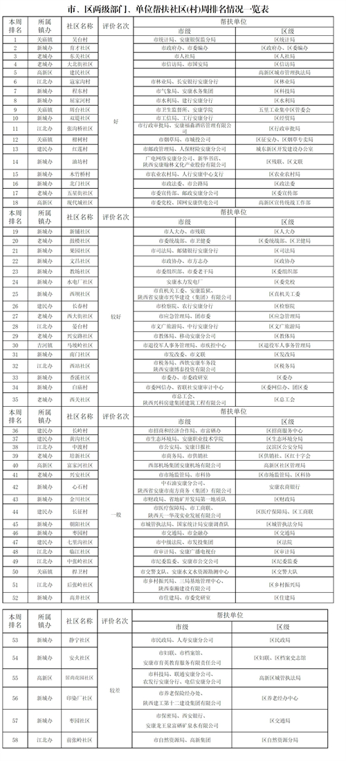 附件:市、區(qū)兩級(jí)部門(mén)、單位幫扶社區(qū)(村)周排名情況一覽表