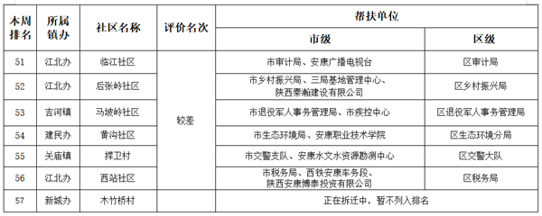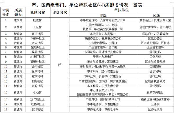 附件:市、區兩級部門、單位幫扶社區(村)周排名情況一覽表FFk安康新聞網