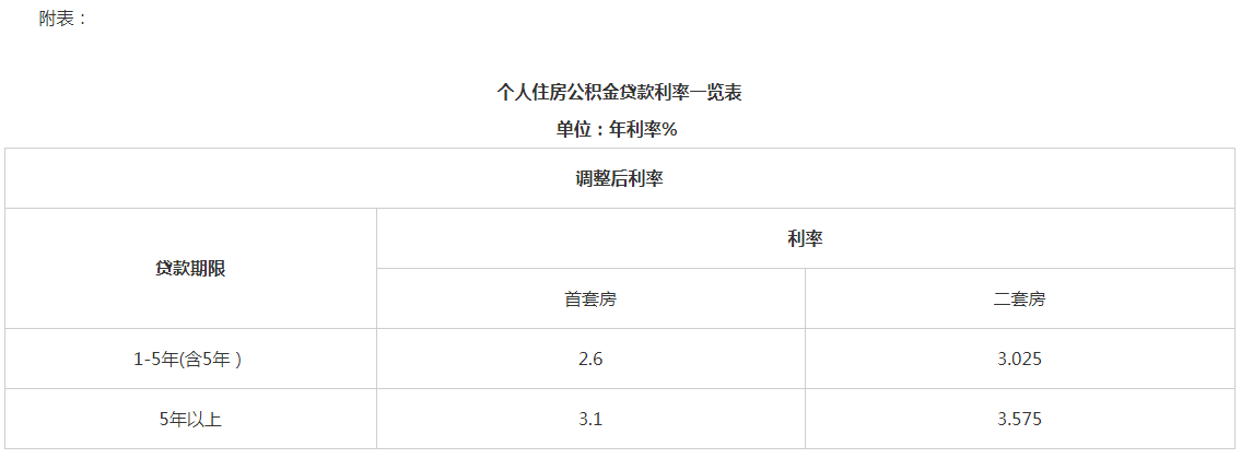 此次下調后,首套個人住房公積金貸款5年以下(含5年)和5年以上利率分別調整為2.6%和3.1%。第二套個人住房公積金貸款利率政策保持不變,即5年以下(含5年)和5年以上利率分別不低于3.025%和3.575%。