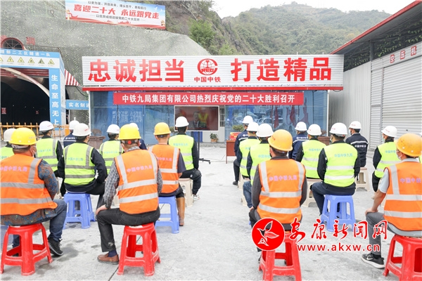 △中鐵九局西康高鐵項目部組織工作人員收聽收看中國共產黨第二十次全國代表大會開幕會直播。(記者 羅超)