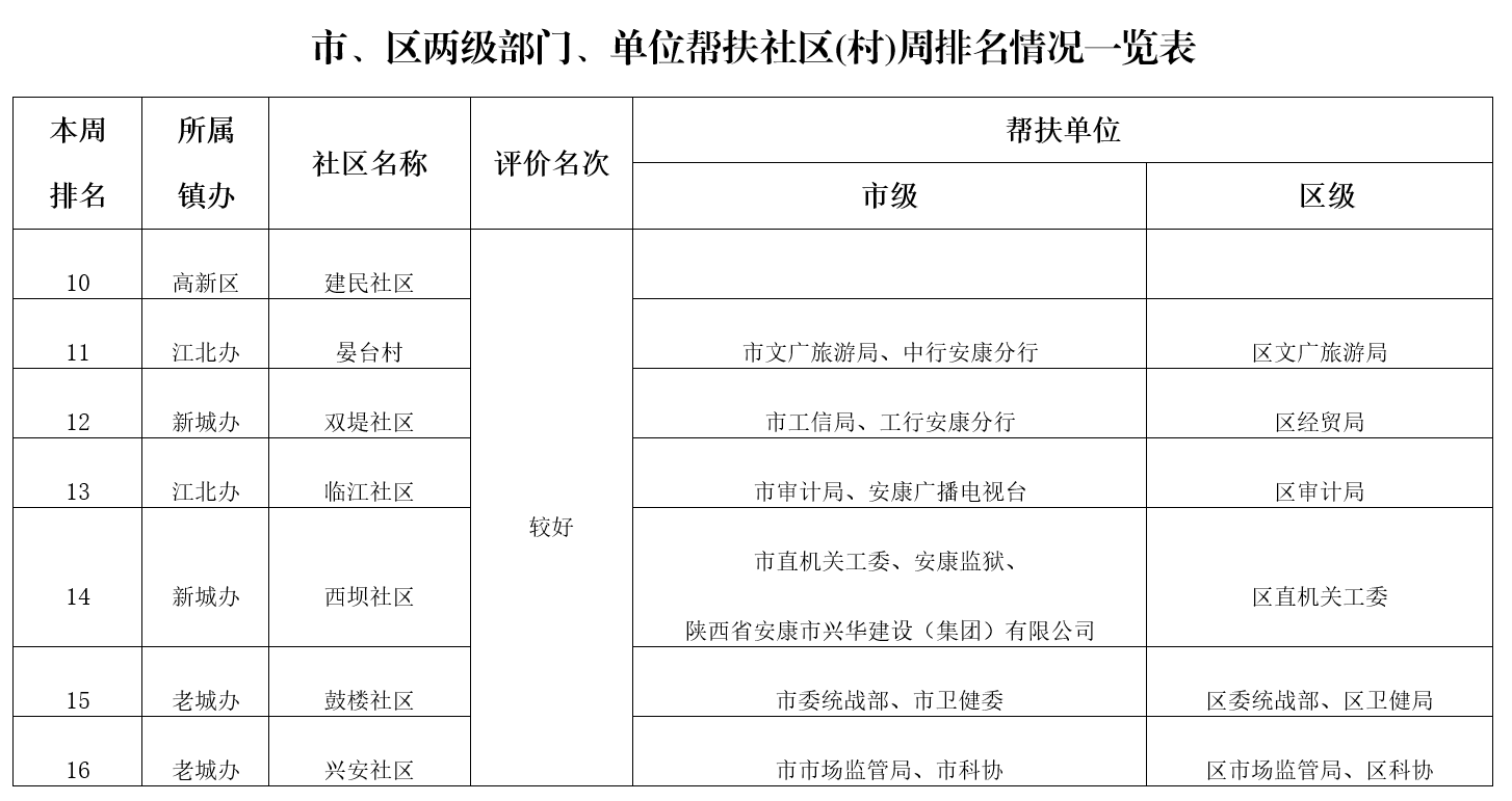 附件:市、區兩級部門幫扶社區(村)周排名情況一覽表