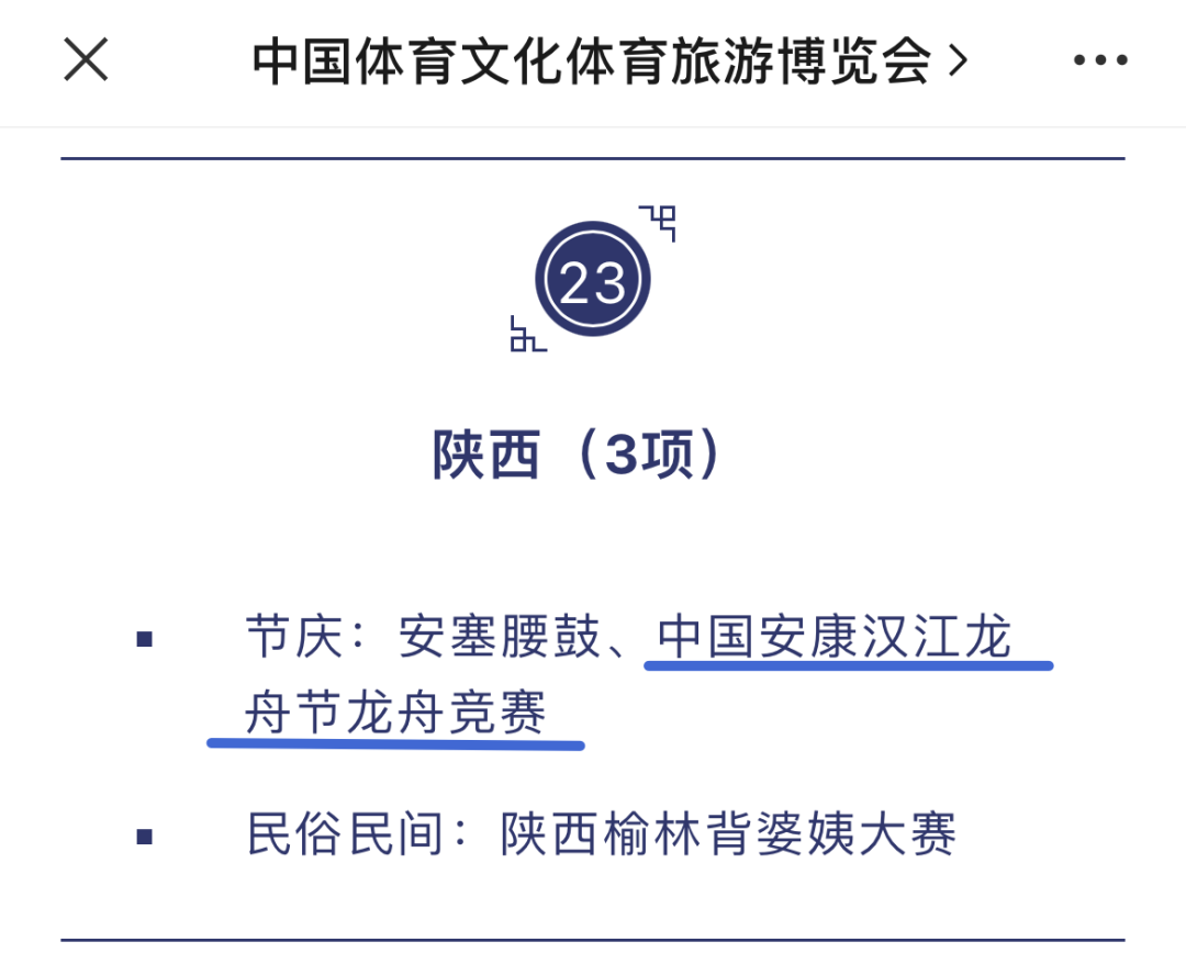 中國安康漢江龍舟節龍舟競賽的成功入選,是繼2013年“中國體育類非物質文化遺產保護與推廣項目”、2021年中華體育文化優秀節慶項目之后獲得的又一國家級榮譽。