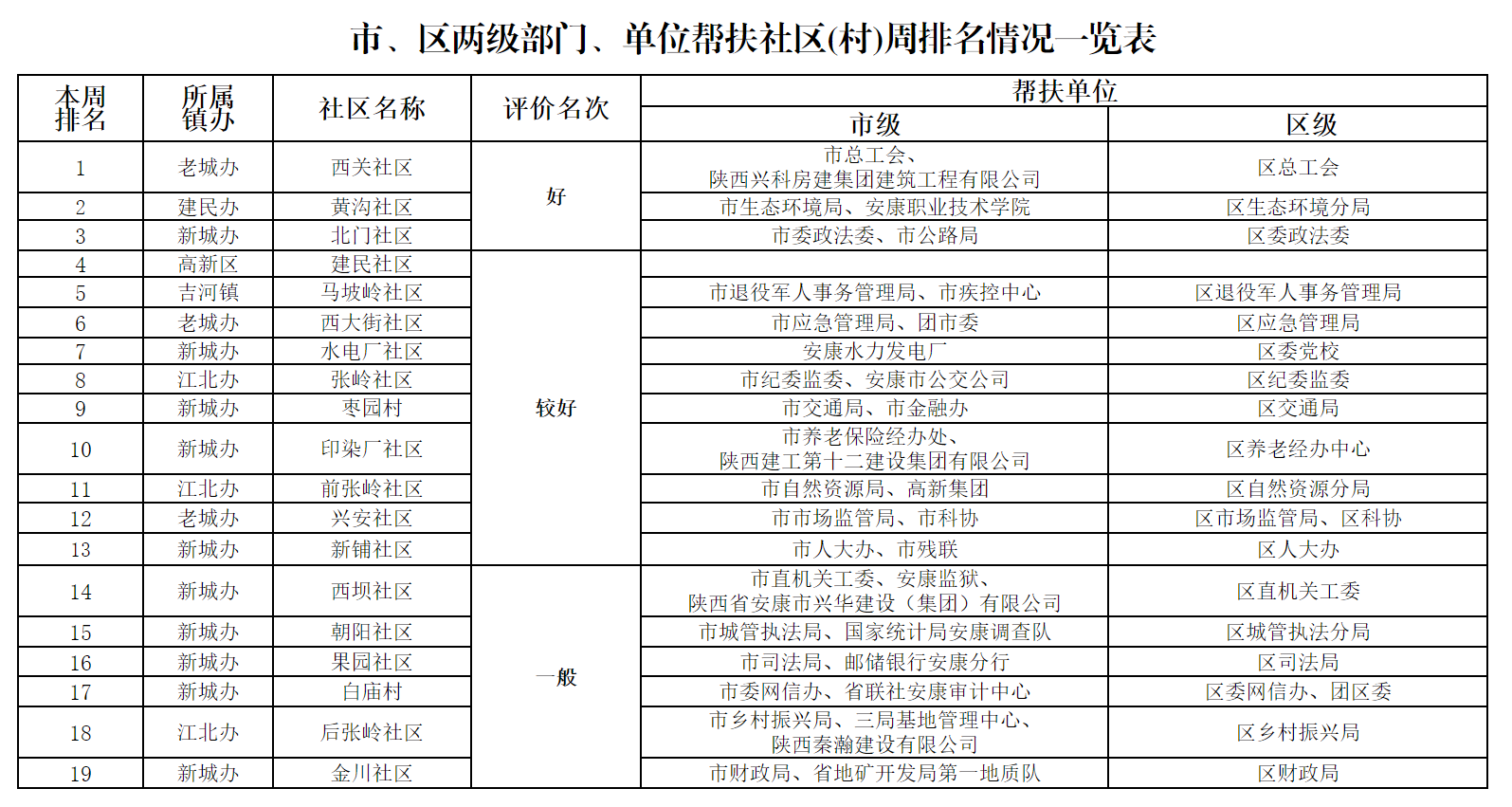 附件:市、區兩級部門幫扶社區(村)周排名情況一覽表