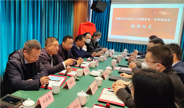 2022年12月30日,安康市首個外出務工人員服務站在西安旬陽商會站掛牌成立。市政府駐西安辦事處主任劉海峰致辭并為服務站揭牌。西安旬陽商會會長楊才鈞主持揭牌儀式。西安安康商會及相關縣區商會代表應邀參加活動。