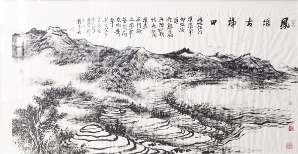 當時在現場采訪的安康電視臺主任記者程云也對這一點印象深刻,她很少見到有畫家在井井有條地回答媒體提問的同時,又能飛快自如地運筆作畫,而且創作的是難度很大的焦墨畫。“他滿腹激情,口才很好,我們還沒來得及完全領悟他的‘千毫皴’畫法的神奇,一幅生動的古梯田‘千毫皴’寫意畫就已經完成了,小小的畫紙,呈現出山川的氣勢,在場觀者無不為之嘆服。”