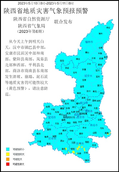 本網(wǎng)訊 5月10日9時,陜西省自然資源廳與陜西省氣象局聯(lián)合發(fā)布地質(zhì)災(zāi)害氣象預(yù)報預(yù)警:預(yù)計5月10日8時至2023年5月11日8時,漢中市鎮(zhèn)巴縣中部,安康市漢濱區(qū)中部和南部、紫陽縣南部、嵐皋縣北部和西部、平利縣北部,商洛市商南縣東南部發(fā)生滑坡、崩塌、泥石流等地質(zhì)災(zāi)害的可能性較大(黃色預(yù)警),提醒廣大民眾注意防范。qPk安康新聞網(wǎng)