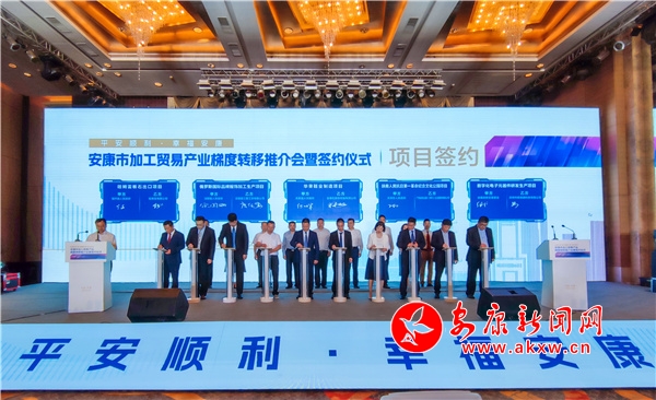 借助第13屆中國加工貿(mào)易產(chǎn)品博覽會(huì)東風(fēng),我市于5月10日下午在東莞市舉行了安康市承接加工貿(mào)易產(chǎn)業(yè)梯度轉(zhuǎn)移推介會(huì)暨簽約儀式。陜西省商務(wù)廳副廳長張文政,市委常委、常務(wù)副市長高晶華分別致辭,商務(wù)部外貿(mào)司二級(jí)巡視員蘇斌,陜西省商務(wù)廳二級(jí)巡視員昌利以及廣東省商務(wù)廳、東莞市商務(wù)局相關(guān)領(lǐng)導(dǎo)出席會(huì)議。廣東海康控股集團(tuán)有限公司、東莞市玖月汽車貿(mào)易有限公司、廣東陜商實(shí)業(yè)有限公司等150余家企業(yè)代表參會(huì)。
