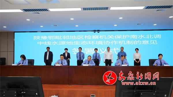 會議期間,南陽、十堰、漢中、商洛、安康五市檢察長會簽了《關于建立陜豫鄂毗鄰地區檢察機關保護南水北調中線水源地生態環境協作機制的意見》,健全完善了信息共享、線索移送、通報反饋、生態修復、調研巡察等協作機制。