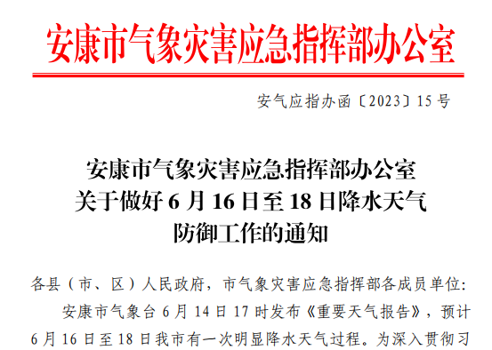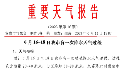 關于做好6月16日至18日降水天氣