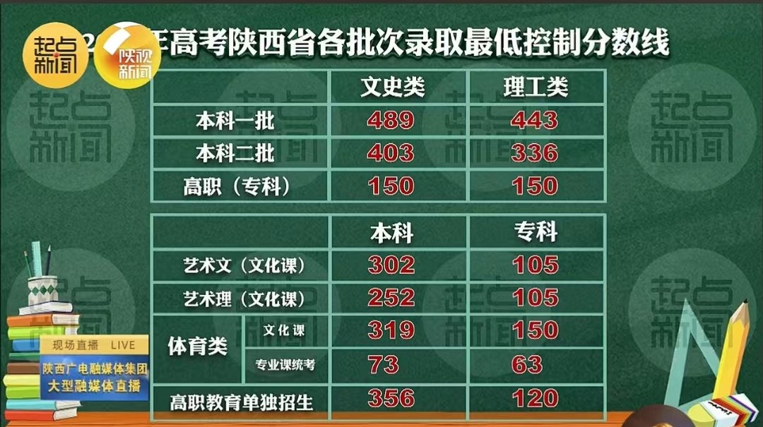 本網訊 6月24日,據2023年陜西省高考各批次錄取分數線新聞發布會公布,陜西的文史類分數線,本科一批489分、二批403分、專科(高職)批150分;理工類分數線本科第一批為443分、第二批336分、專科(高職)批150分。uH4安康新聞網