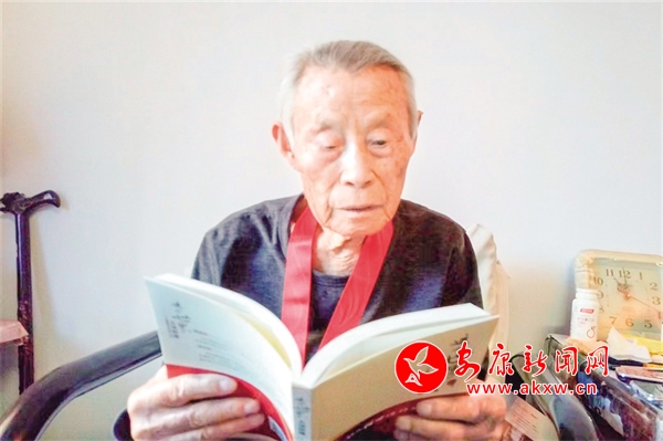 93歲的鄺民三仍舊耳聰目明,閱讀無障礙。8J9安康新聞網
