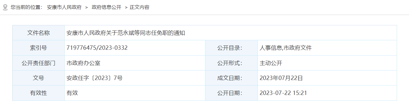 安康市人民政府關于屈孝旭等同志任免職的通知