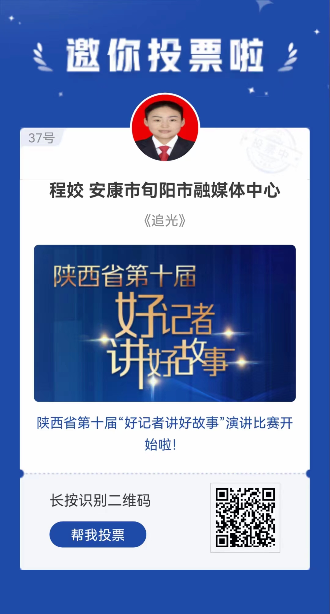 我市一人入圍!陜西省第十屆“好記者講好故事”活動投票通道開啟