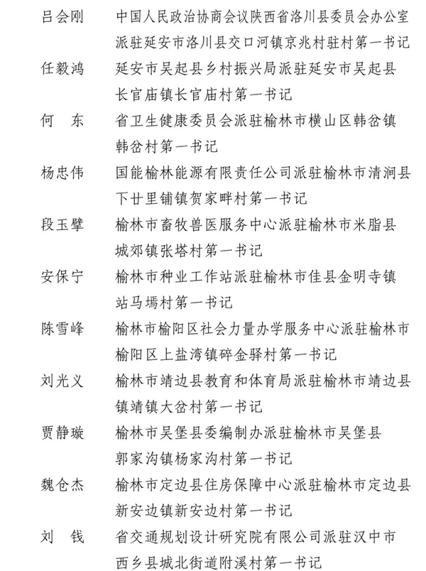 2021年以來,全省各級各相關單位用情用力、持續開展定點幫扶和駐村幫扶工作,為全省鞏固拓展脫貧攻堅成果上臺階、鄉村振興見實效作出了突出貢獻,涌現出了一大批先進集體和先進個人。為表彰先進、樹立典型,進一步營造氛圍、凝聚合力,激發各級各相關單位參與定點幫扶、駐村幫扶工作的積極性、主動性和創造性,省鞏固拓展脫貧攻堅成果同鄉村振興有效銜接領導小組辦公室決定,授予陜煤集團助力漢陰鄉村振興工作站等50個單位“陜西省定點幫扶工作先進集體”榮譽稱號,授予李鵬等100名同志“陜西省定點幫扶工作先進個人”榮譽稱號。