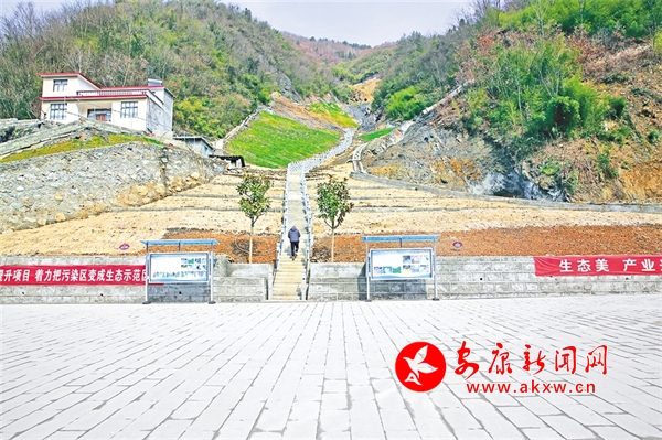 在卡子鎮(zhèn)和尚廟礦點(diǎn),礦硐封堵標(biāo)識(shí)牌上顯示:施工日期2022年9月18日,竣工日期2022年10月15日。8月16日,竣工10個(gè)月之后,記者看到,在礦硐封堵治理后,礦山山體再次被綠色包裹,礦硐兩側(cè)的山坡開滿了五顏六色的花朵。相隔幾十米,一個(gè)基礎(chǔ)設(shè)施完善的文化廣場在清澈的小溪旁格外顯眼。