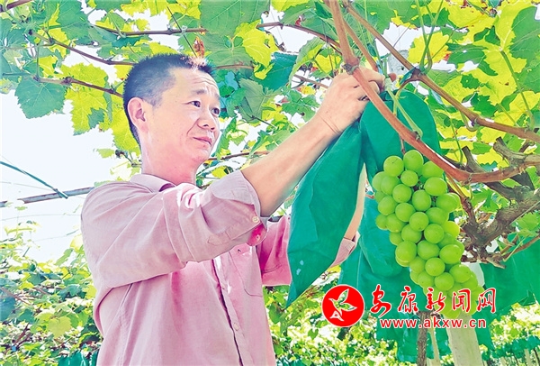 葡萄園負責人石洪寶認真地察看果子的長勢,眼里滿是豐收的喜悅。“今年葡萄雖然在掛果期受到雨水影響,但是整體長勢還不錯,再過幾天就可以開園采摘了。”拆開一個套袋,晶瑩如玉的陽光玫瑰葡萄顆顆飽滿渾圓,濃郁的果香瞬間涌入鼻腔。石洪寶笑著說:“這可是精心挑選出來的好產業(yè),現(xiàn)在全村以陽光玫瑰葡萄種植為主,共發(fā)展100畝左右,產業(yè)效益很不錯,葡萄已經成為帶動村民穩(wěn)定增收的‘致富果’。”