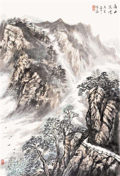 這次展覽的作品是我在陜南青山綠水間的寫生、創作歷程。我把它匯集起來,就是向我熱戀的這片土地的一次總結匯報。我想說的是,中國畫的一支筆和一個平面的變幻在新時代無窮無盡深不可測,越是深入越覺艱難。必須保持思想的高度自覺,在翻越傳統的高墻上求得創造性轉化、創新性發展,使中國畫永葆時代的精神風貌。