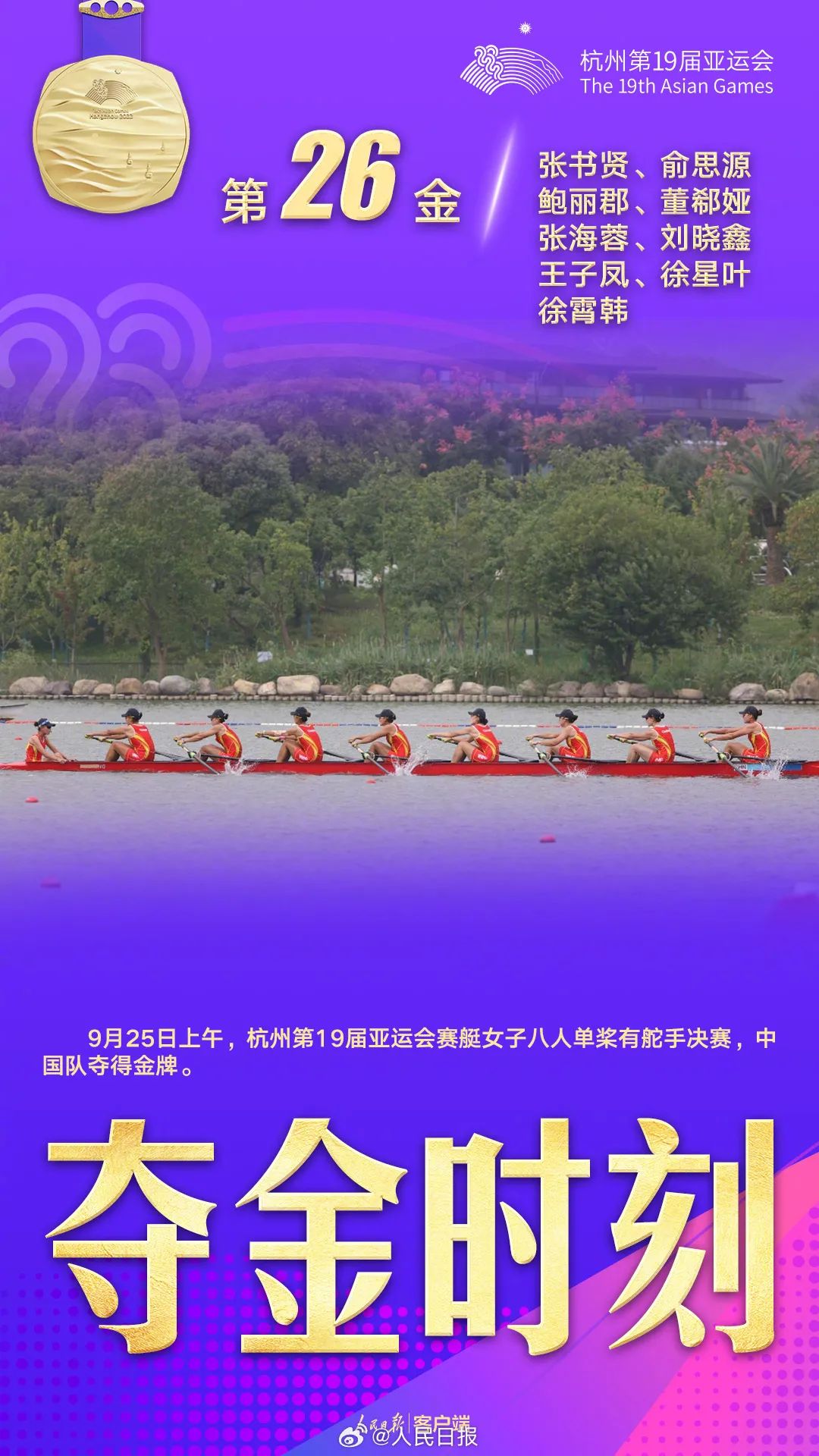 9月25日上午,在杭州第19屆亞運會賽艇女子八人單槳有舵手決賽中,中國組合張書賢、俞思源、鮑麗郡、董郗婭、張海蓉、劉曉鑫、王子鳳、徐星葉和徐霄韓奪得金牌!CJU安康新聞網