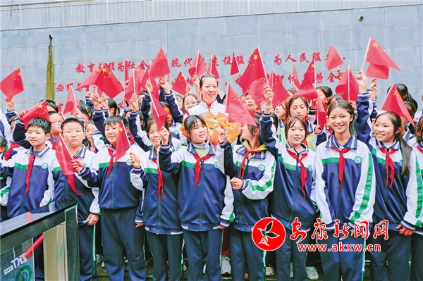 徐星葉回到母校和學(xué)弟學(xué)妹合影留念。 卜昊天 攝