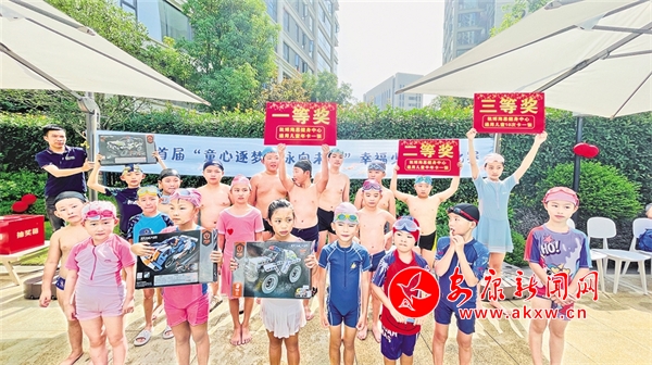 博元幸福城社區定期開展兒童游泳比賽活動,用心呵護孩子們的健康成長。FEg安康新聞網