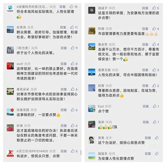 從前期“需要十幾萬元的祭祀場地費用”,到“幾乎不花錢”地設置臨時集中祭祀點位,既滿足了群眾祭祀需求,又維護了城市環境衛生和文明形象,還贏得了廣泛贊譽和民心。“人性化的管理”“暖民心順民意”“城市管理有溫度”……在微信公眾號留言區、抖音評論區,市民對此舉高度認可,好評一片,反響強烈,也為今后祭祀節點在中心城區能夠形成文明祭祀之風開了一個好頭。