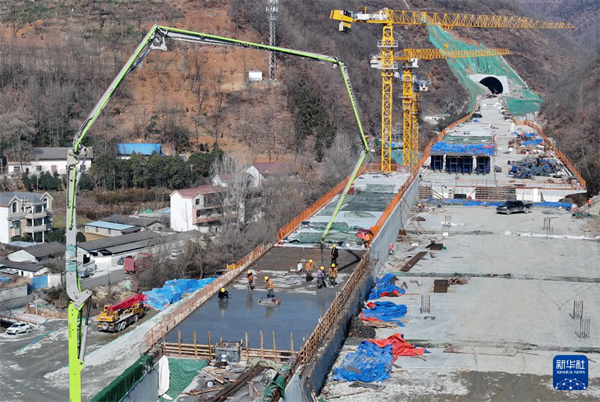 △ 工人在中鐵十一局集團西康高鐵4標段項目施工現場作業(1月26日攝,無人機照片)。新華社記者 邵瑞 攝