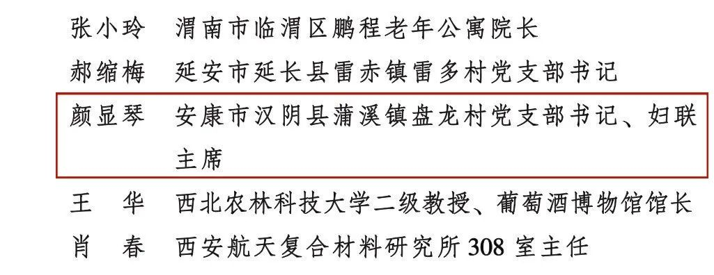 其中,安康市漢陰縣蒲溪鎮盤龍村黨支部書記、婦聯主席顏顯琴獲得“全國三八紅旗手”稱號。N3K安康新聞網