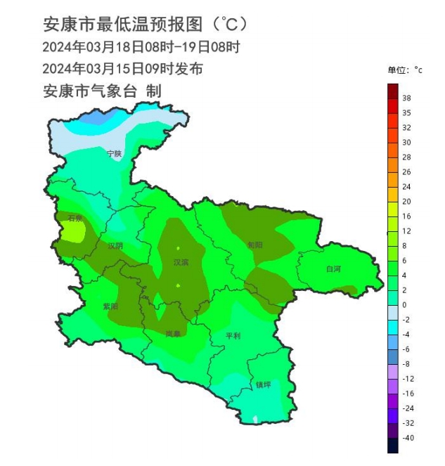 18日08時-19日08時安康市最低氣溫預報圖 TJD安康新聞網
