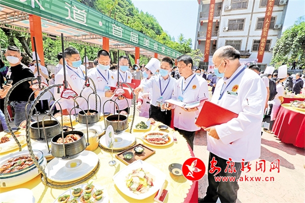 首屆美食烹飪技能大賽吸引了全縣做菜高手和游客積極參與。 張天兵 攝5yr安康新聞網